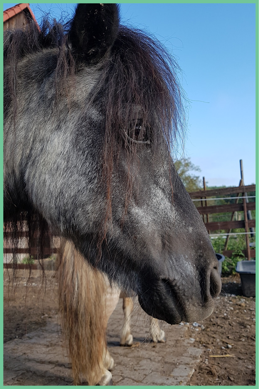 Andere Ponys wurden ihrem Besitzer zu anstrengend oder zu teuer, sie wurden älter, nicht mehr nutzbar und krank. Also mussten sie weg. Sechs Zwerge, die nun Namen haben, die geliebt, behandelt und umsorgt werden – Sie dürfen nun hier im Offenstall mit großer Weide ihr Unwesen treiben.